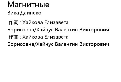 | [00:00.00-1] | 作曲 : Хайкова Елизавета Борисовна/Хайнус Валентин Викторович |