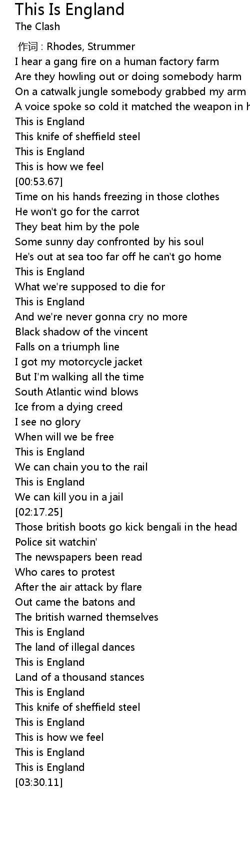 | [00:00.00] | 作词 : Rhodes, Strummer |