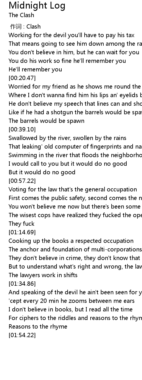 | [00:06.04] | Working for the devil you' ll have to pay his tax |