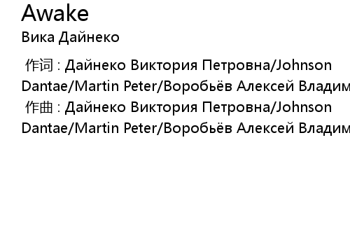| [00:00.00-1] | 作曲 : Дайнеко Виктория Петровна/Johnson Dantae/Martin Peter/Воробьёв Алексей Владимирович |