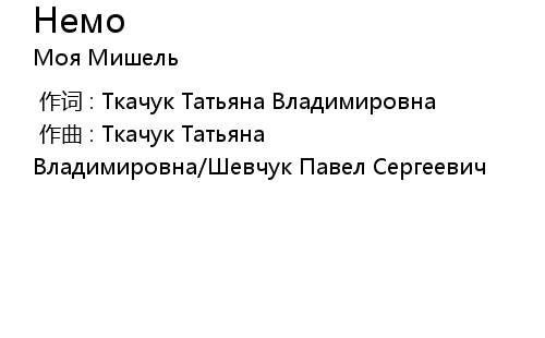 | [00:00.00-1] | 作曲 : Ткачук Татьяна Владимировна/Шевчук Павел Сергеевич |