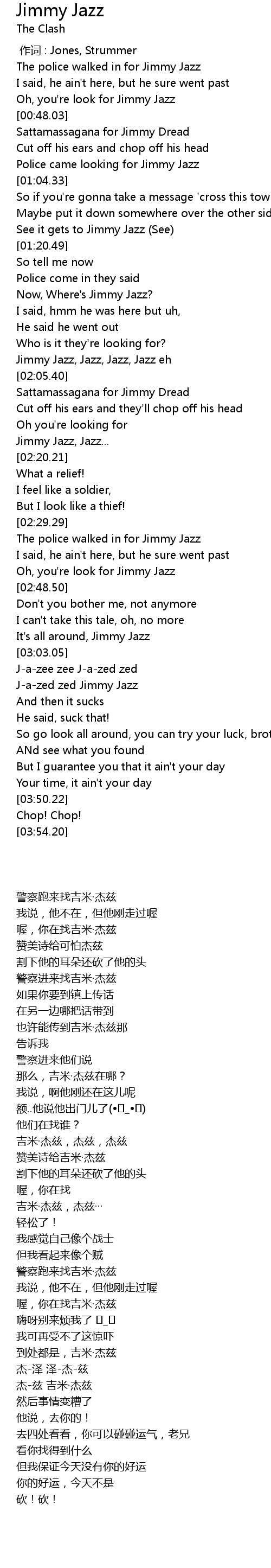 | [00:58.14] | Police came looking for Jimmy Jazz |