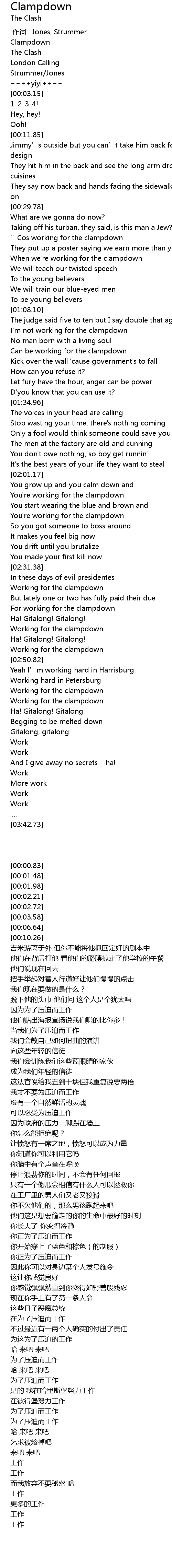 | [00:52.83] | When we' re working for the clampdown |