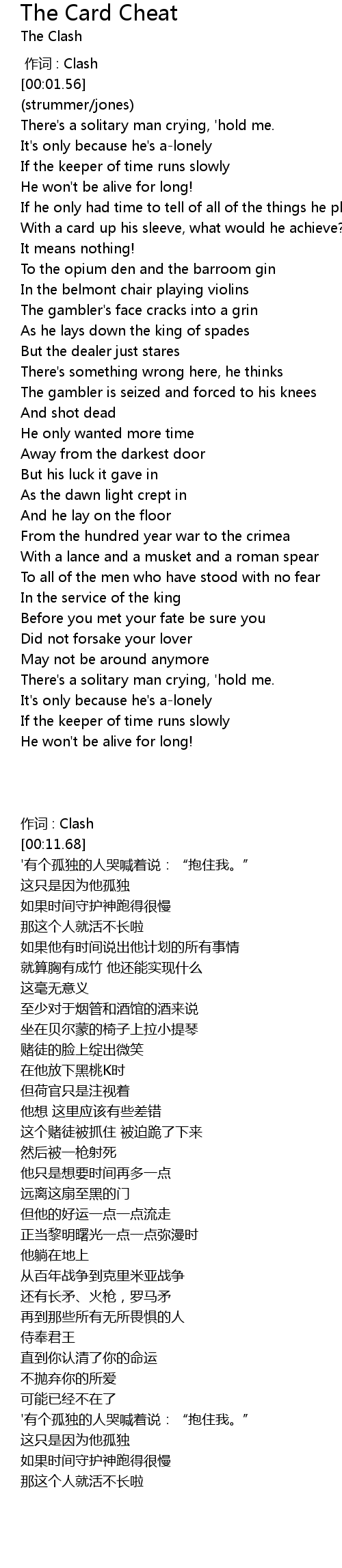 | [00:11.68] | (strummer/jones) |