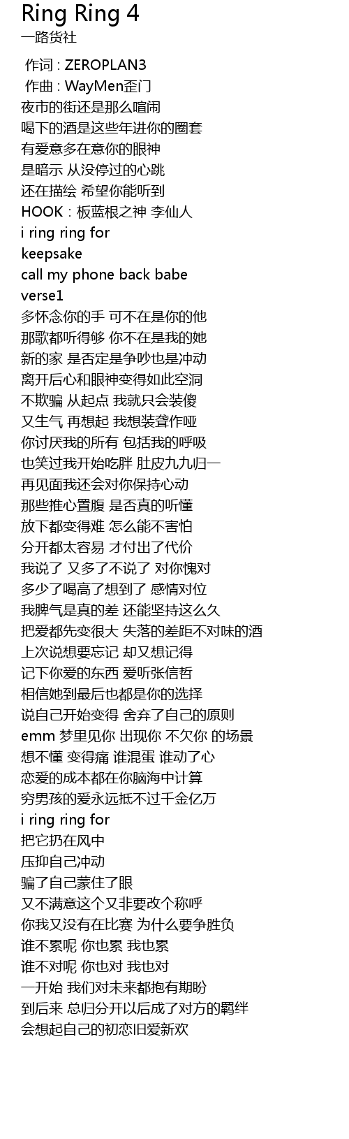 | [00:01.000] | zuo qu : WayMen wai men |