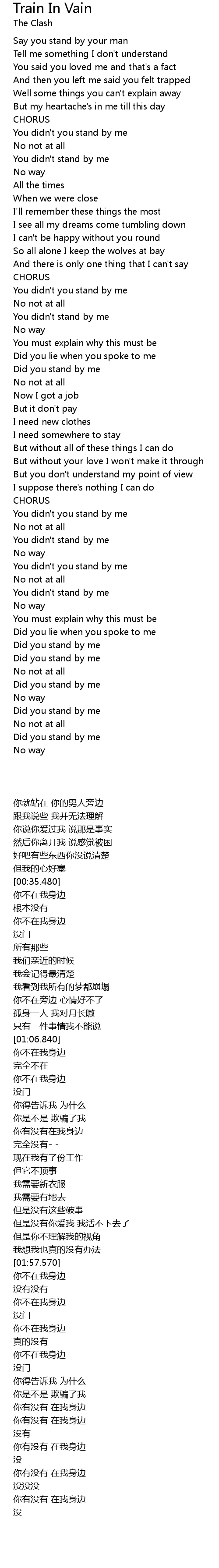Train In Vain 歌词