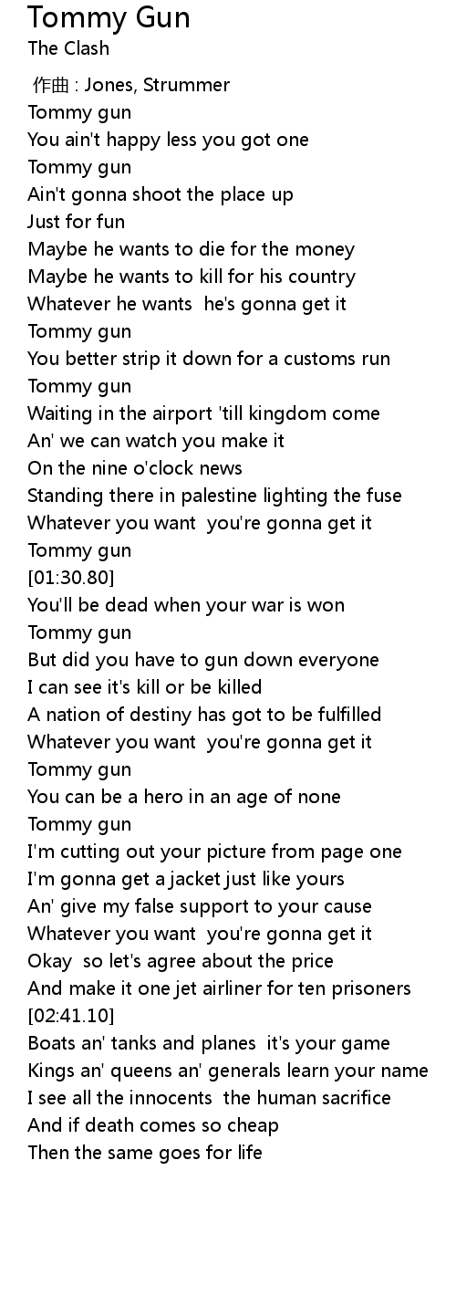 | [00:25.44] | Ain' t gonna shoot the place up |