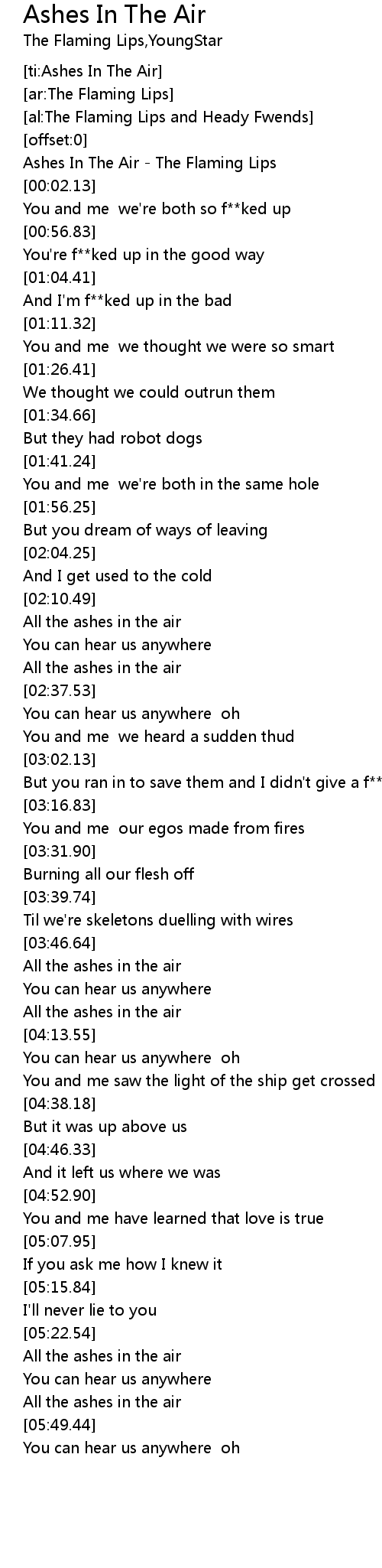 [00:00.70] Ashes In The Air - The Flaming Lips