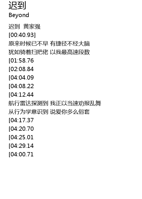 | [00:09.00] | 迟到 黄家强 |