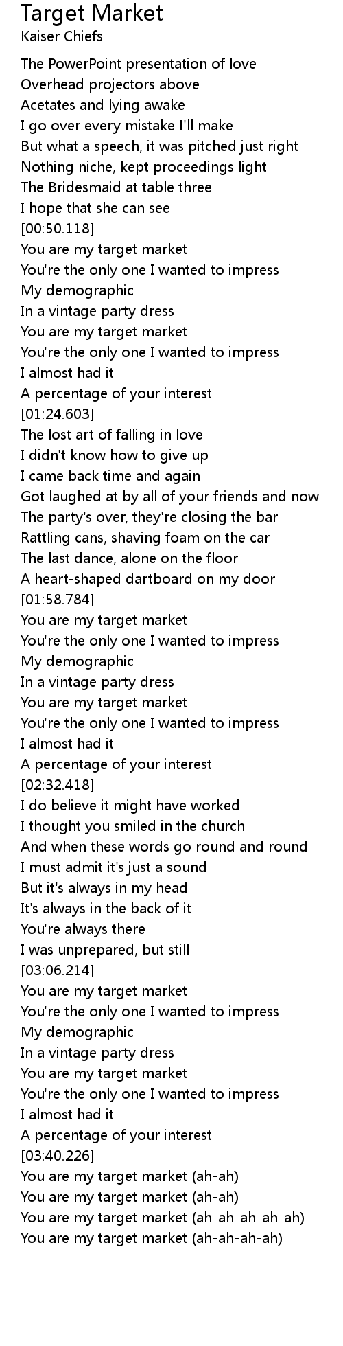 [03:57.284] You are my target market (ah-ah-ah-ah-ah)