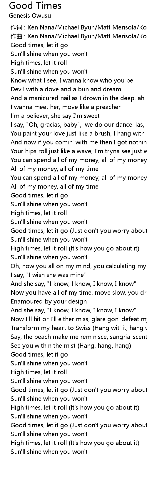 | 歌曲 | Good Times |