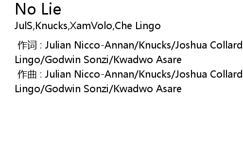 | [00:00.00-1] | 作词 : Julian Nicco-Annan/Knucks/Joshua Collard/XamVolo/Che Lingo/Godwin Sonzi/Kwadwo Asare |