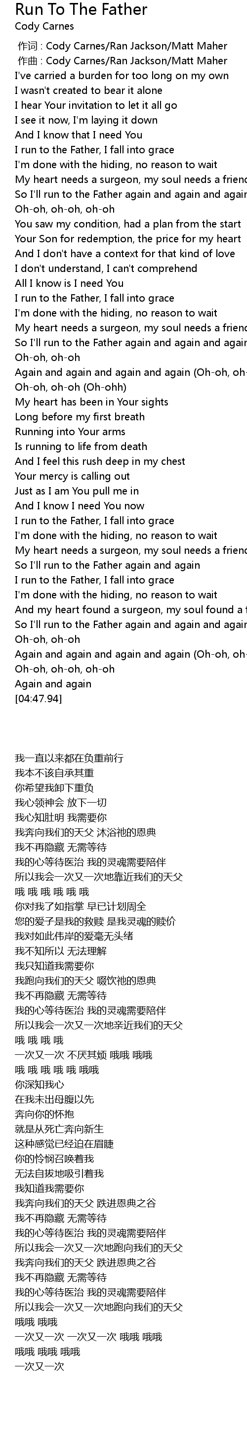 | [04:18.58] | So I' ll run to the Father again and again and again and again |
