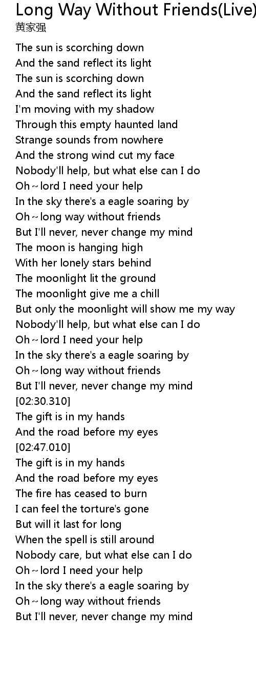 | [01:20.850] | Nobody'll help, but what else can I do |