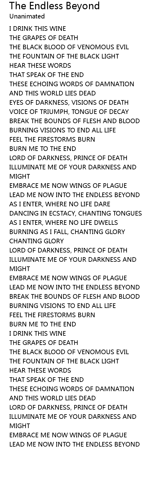 LEAD ME NOW INTO THE ENDLESS BEYOND |