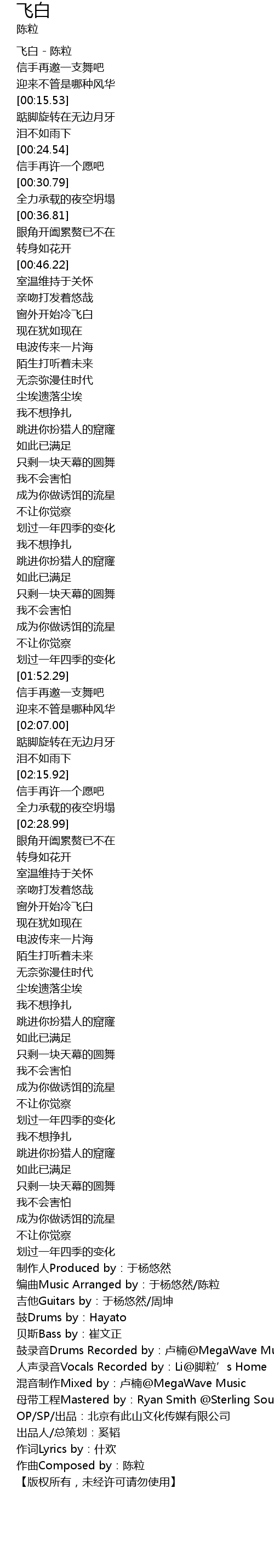 [03:48.67] 人声录音Vocals Recorded by:Li@脚粒’s Home