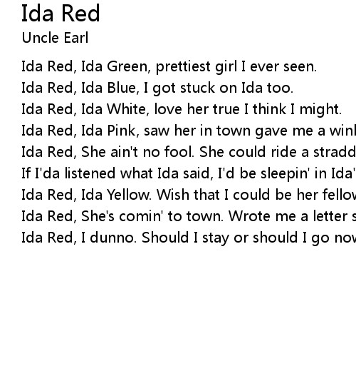 | Ida Red, She's comin' to town. Wrote me a letter she's comin' down . | |