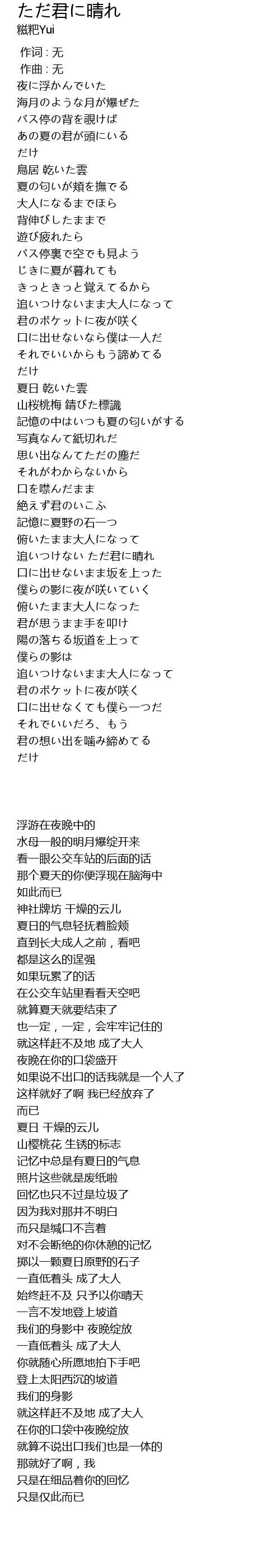 | 歌曲 | ただ君に晴れ |