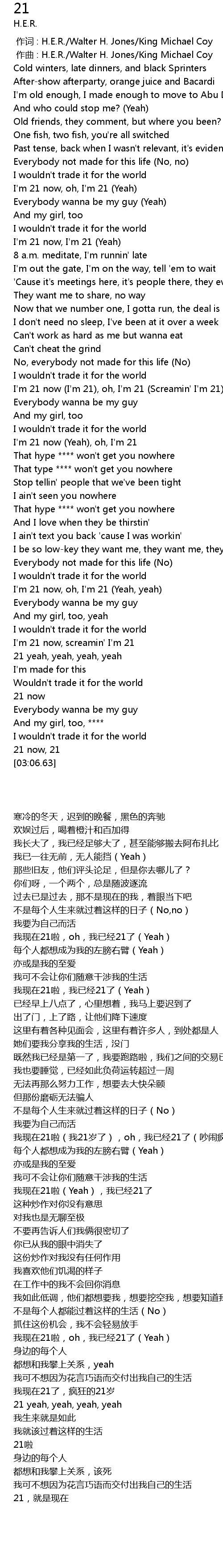 | [00:59.49] | 我现在21啦,我已经21了(Yeah) |