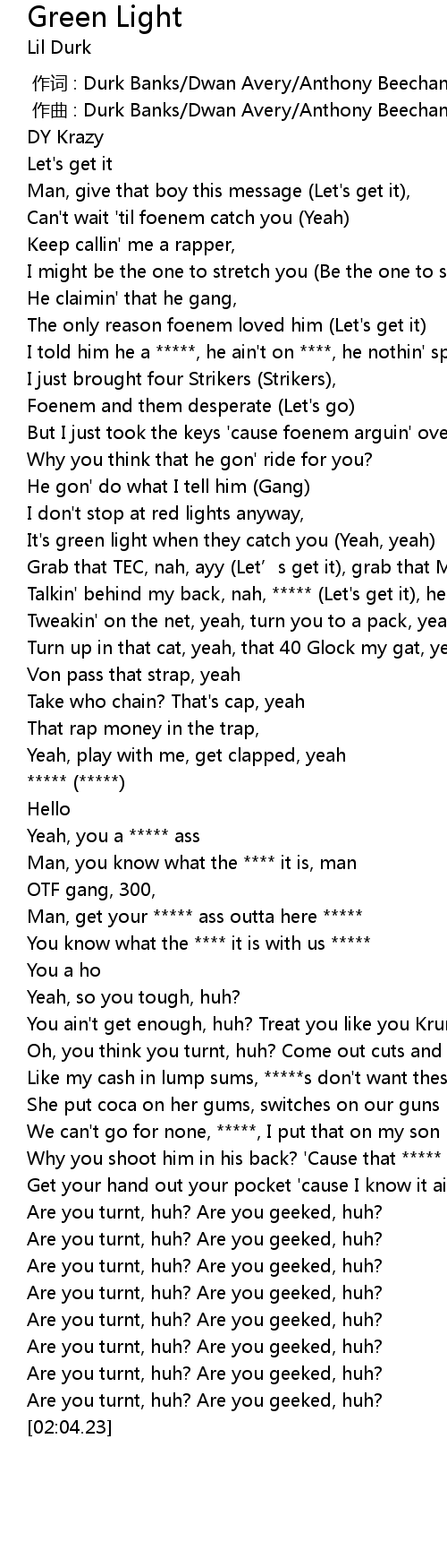 | [00:36.30] | It's green light when they catch you (Yeah, yeah) |