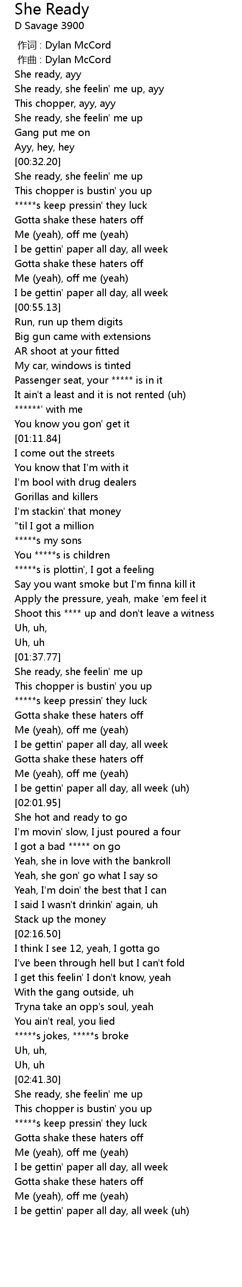 | [00:16.45] | She ready, ayy |