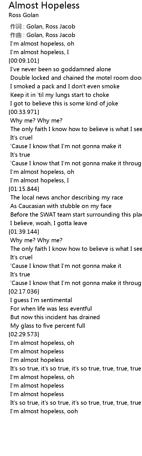 | [00:00.000] | 作词 : Golan, Ross Jacob |