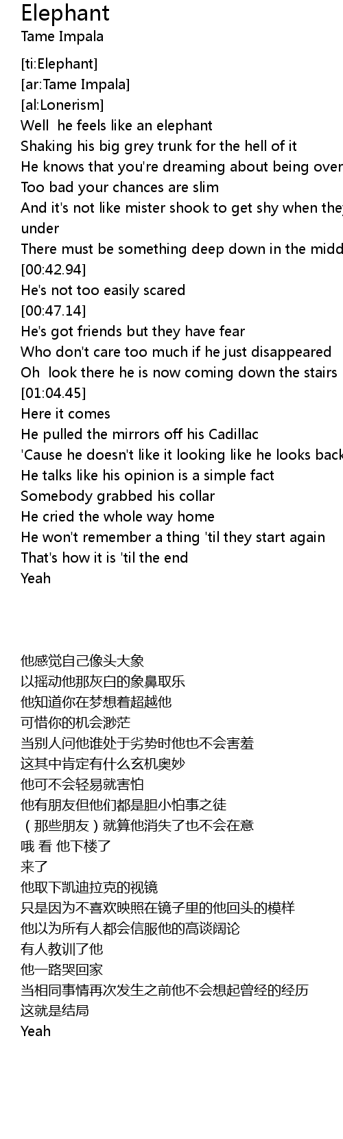 [00:07.50] Shaking his big grey trunk for the hell of it