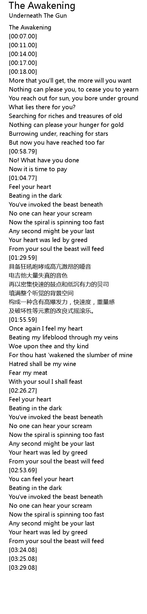 | [00:03.00] | The Awakening |