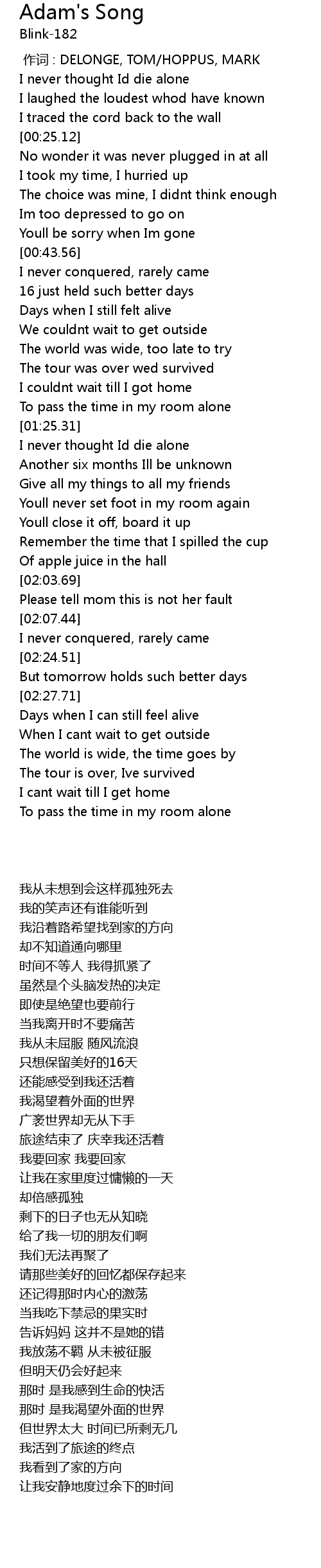 | [00:00.00] | 作词 : DELONGE, TOM/HOPPUS, MARK |