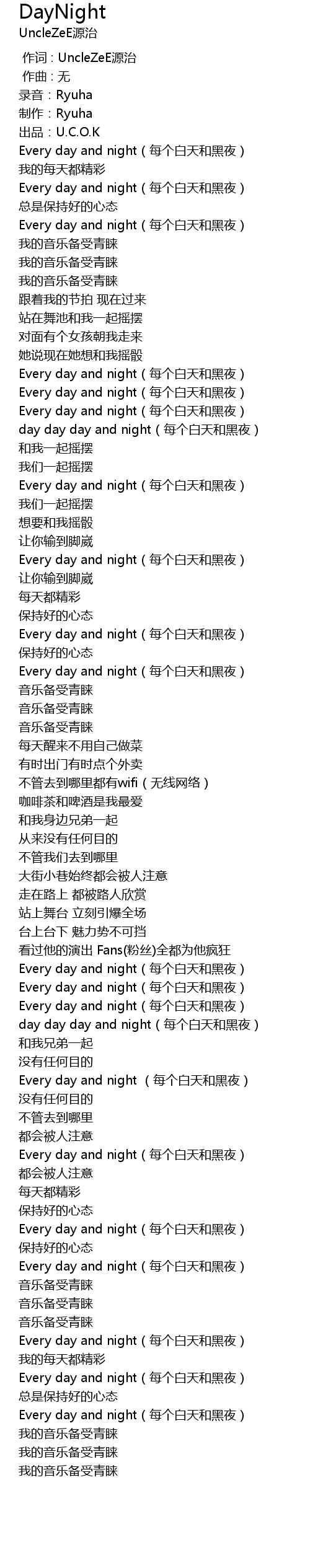 | [00:53.637] | day day day and night(每个白天和黑夜) |