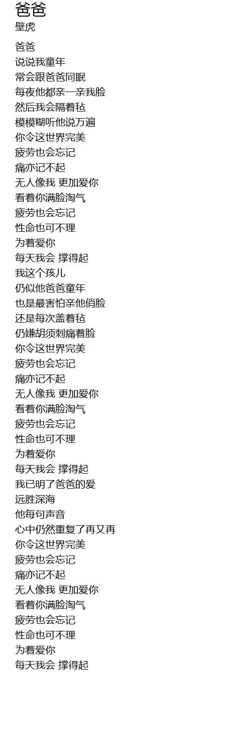 | wǒ yǐ míng liǎo bà bà de ài | |