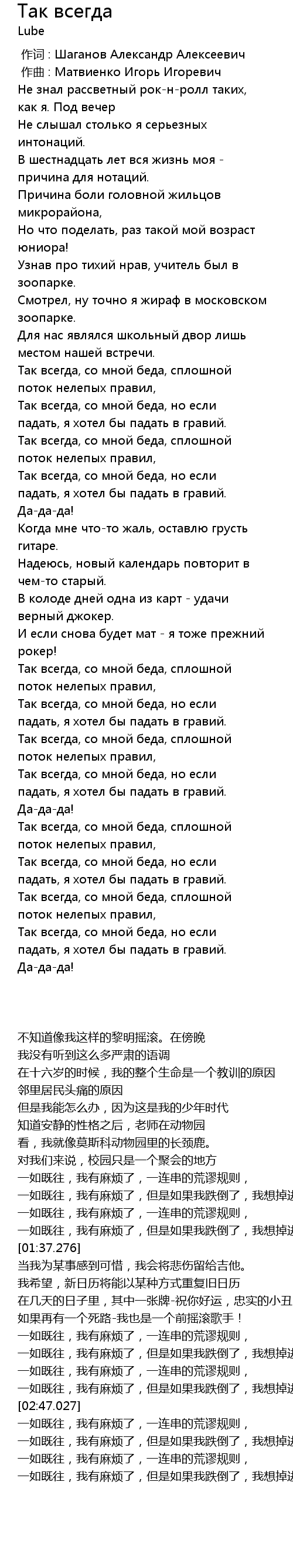 | [02:08.266] | И если снова будет мат - я тоже прежний рокер! |