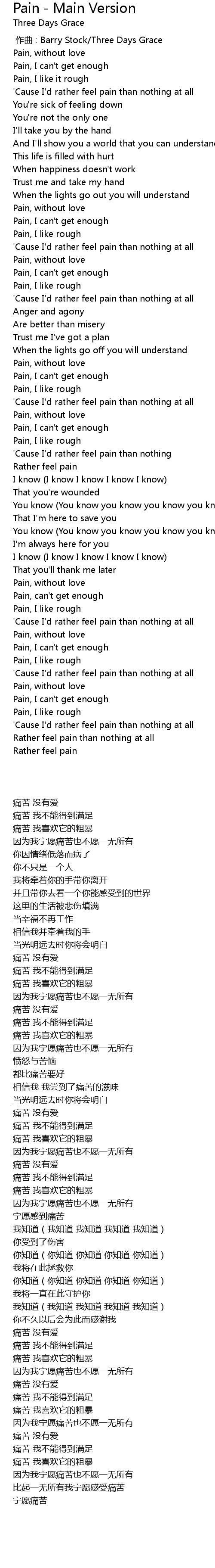 | [00:09.02] | ' Cause I' d rather feel pain than nothing at all |