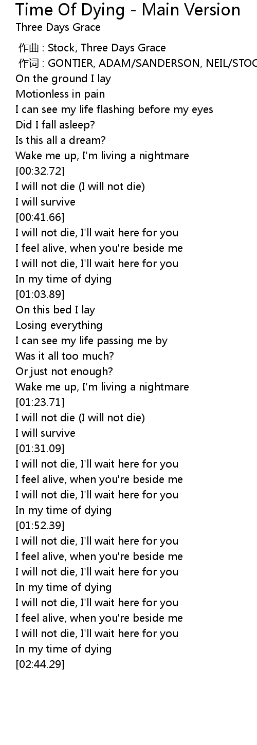 | [00:00.00] | 作曲 : Stock, Three Days Grace |