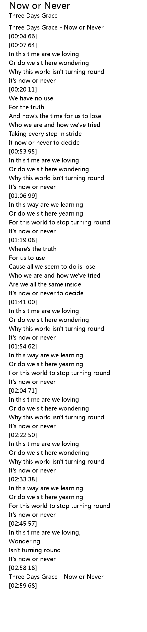 [02:59.02] Three Days Grace - Now or Never