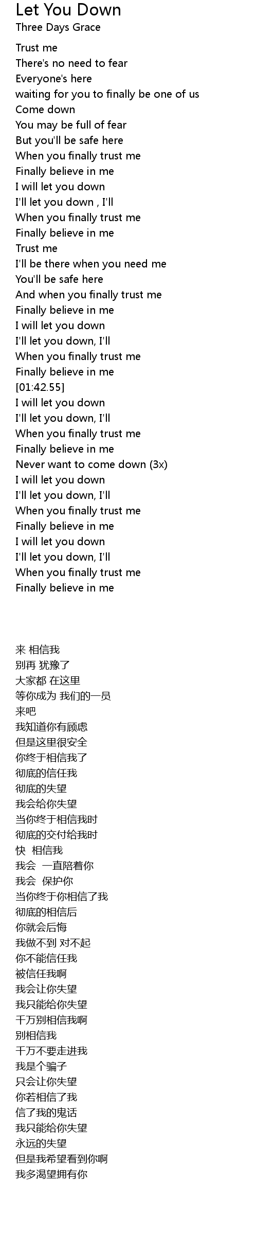 I'll let you down , I'll |