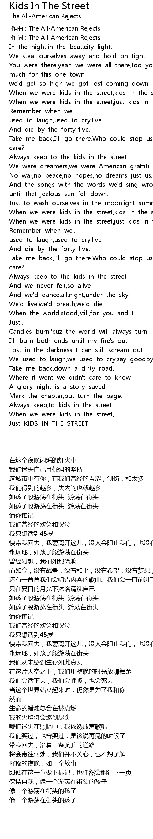 | [00:51.57] | When we were kids in the street,kids in the street. |