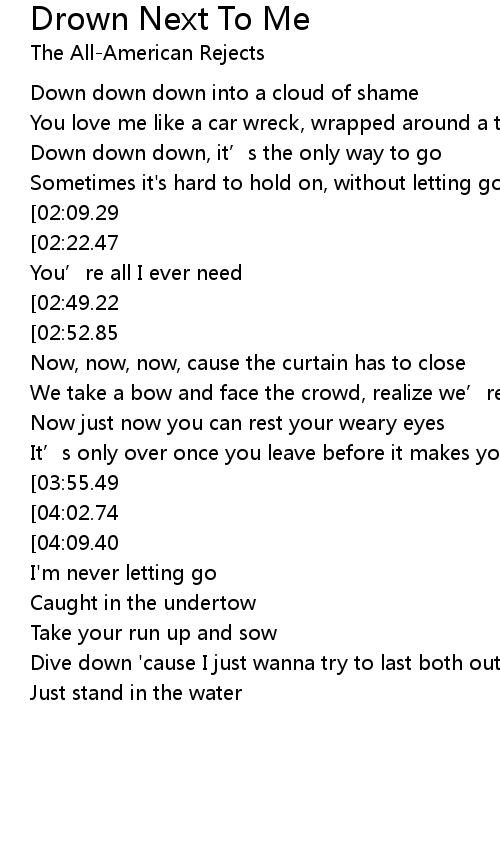 | [01:31.82][02:52.85][04:38.52] | Drown next to me |