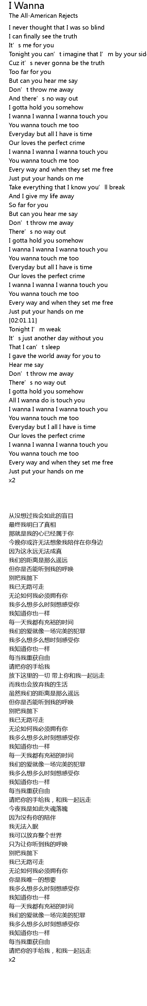 | [01:49.01] | I wanna I wanna I wanna touch you |