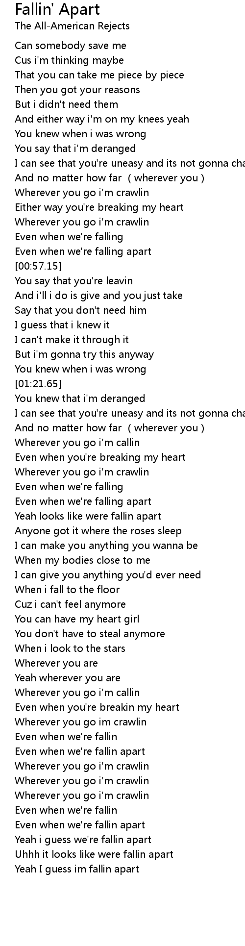 | [01:47.05] | Yeah looks like were fallin apart |
