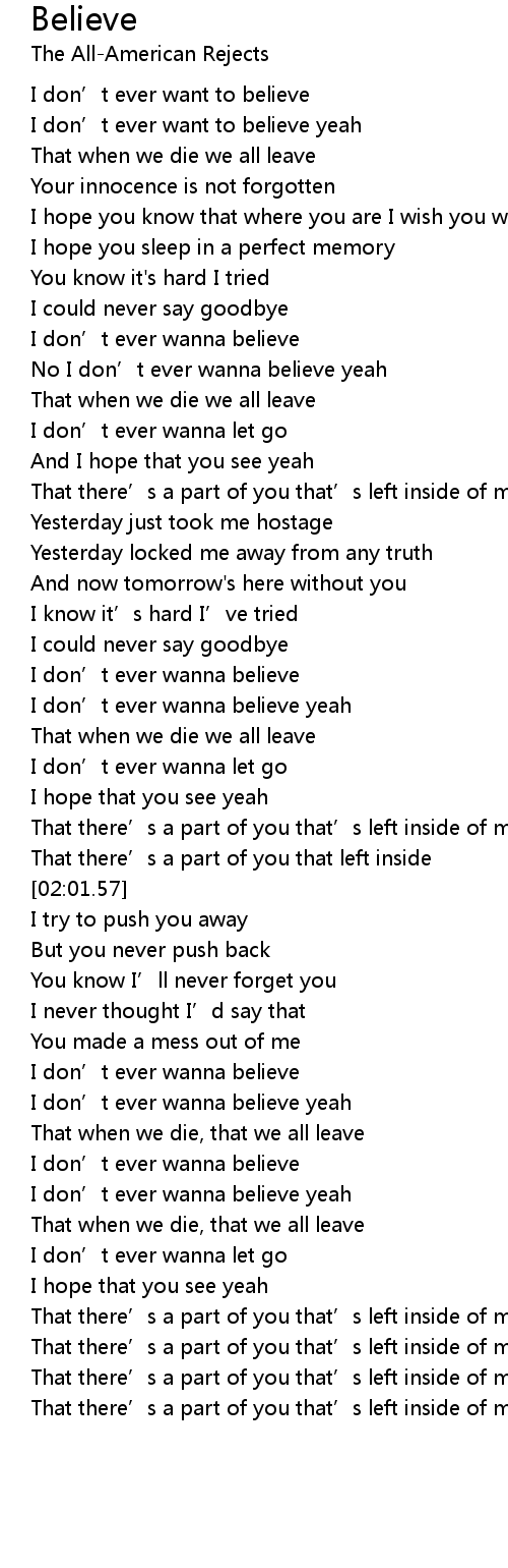 | [02:44.72] | I don' t ever wanna believe yeah |
