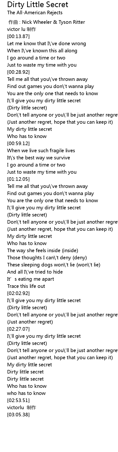 | [01:25.08] | I\'ll give you my dirty little secret |