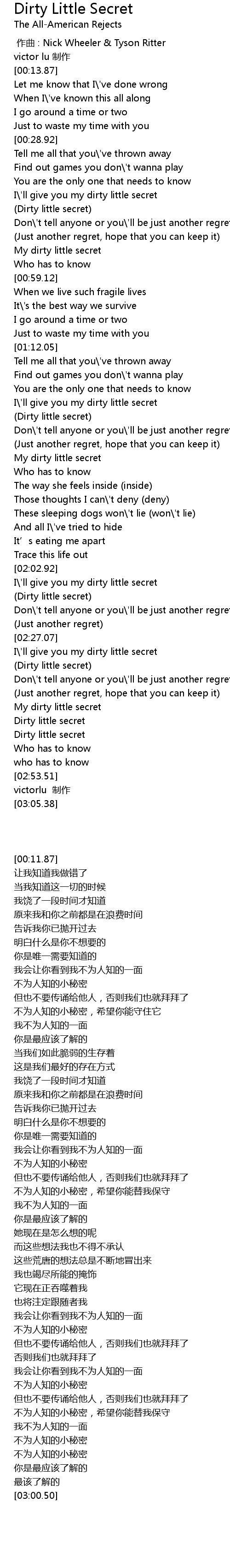 | [01:25.08] | I\'ll give you my dirty little secret |