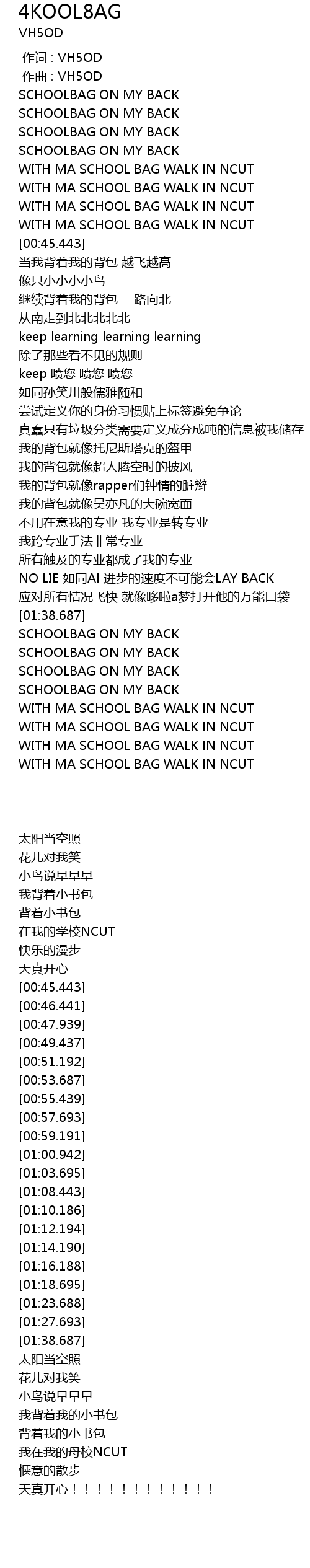 | [00:41.694] | WITH MA SCHOOL BAG WALK IN NCUT |