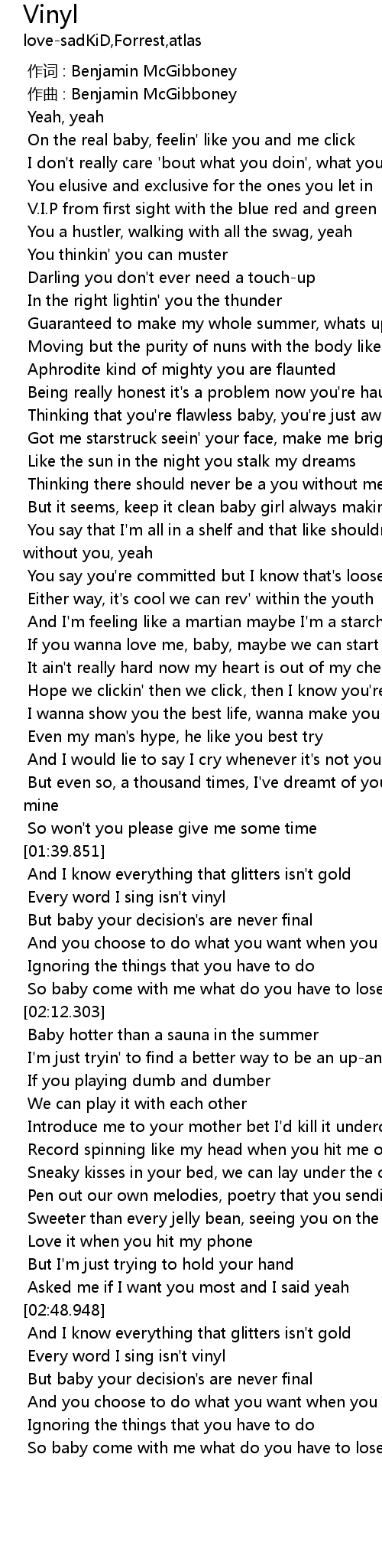 | [01:47.293] | Every word I sing isn' t vinyl |