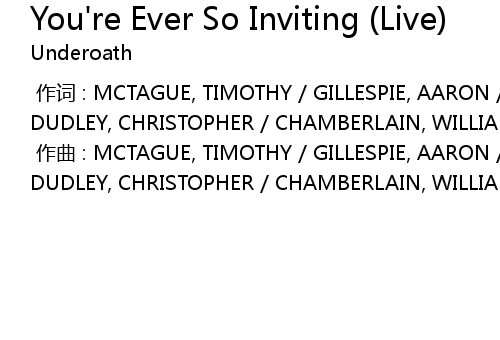 | [00:00.000] | 作词 : MCTAGUE, TIMOTHY / GILLESPIE, AARON / BRANDELL, GRANT / DUDLEY, CHRISTOPHER / CHAMBERLAIN, WILLIAM SPENCER / SMITH, JAMES |
