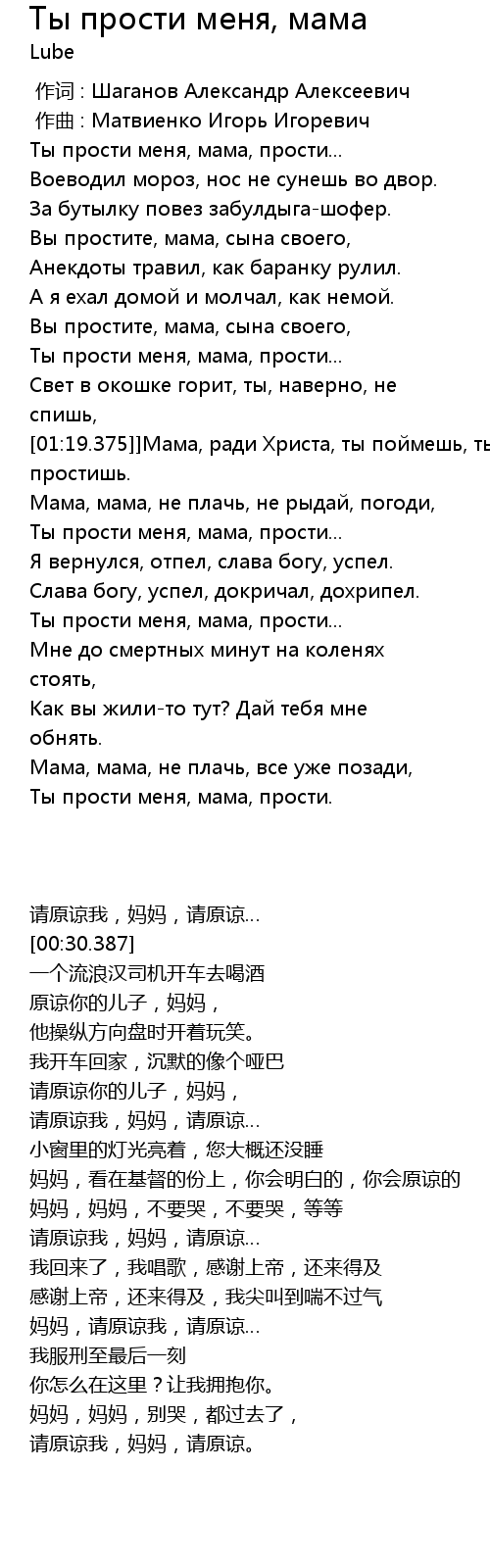 | [01:09.297] | Ты прости меня, мама, прости... |