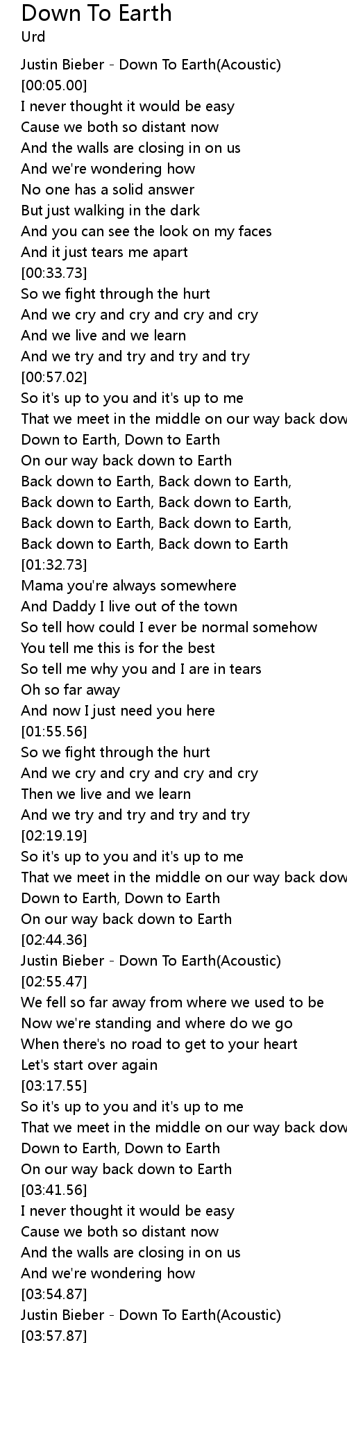 | [03:55.87] | Justin Bieber - Down To Earth(Acoustic) |