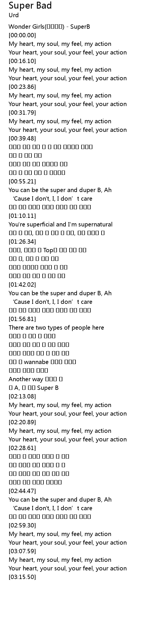 | [02:10.92] | 난 A, 넌 그저 Super B |