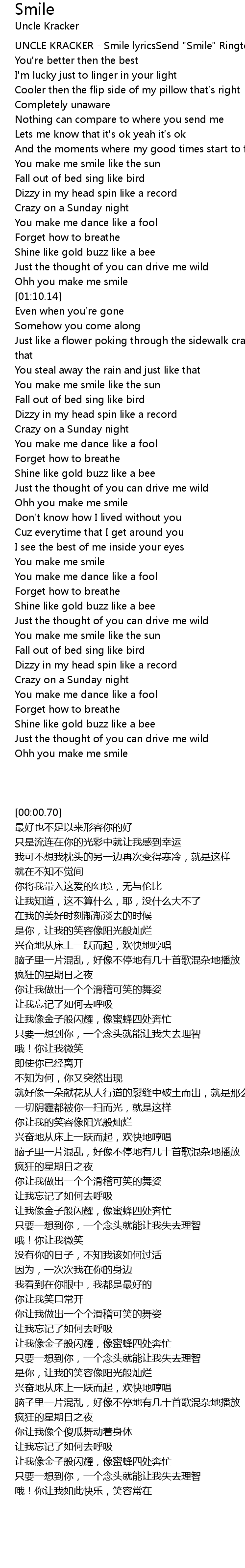 | [00:00.70] | UNCLE KRACKER Smile lyricsSend " Smile" Ringtone to your Cell |